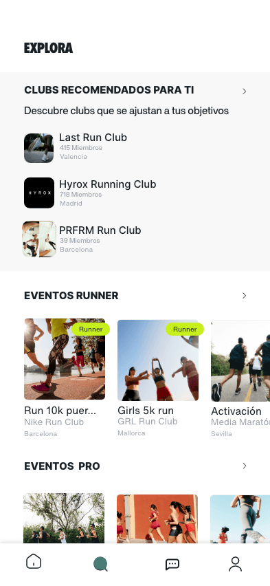 Correr acompañado es mucho mejor. Descubre clubs y eventos cerca tuya, haz nuevos amigos y encuentra motivación.